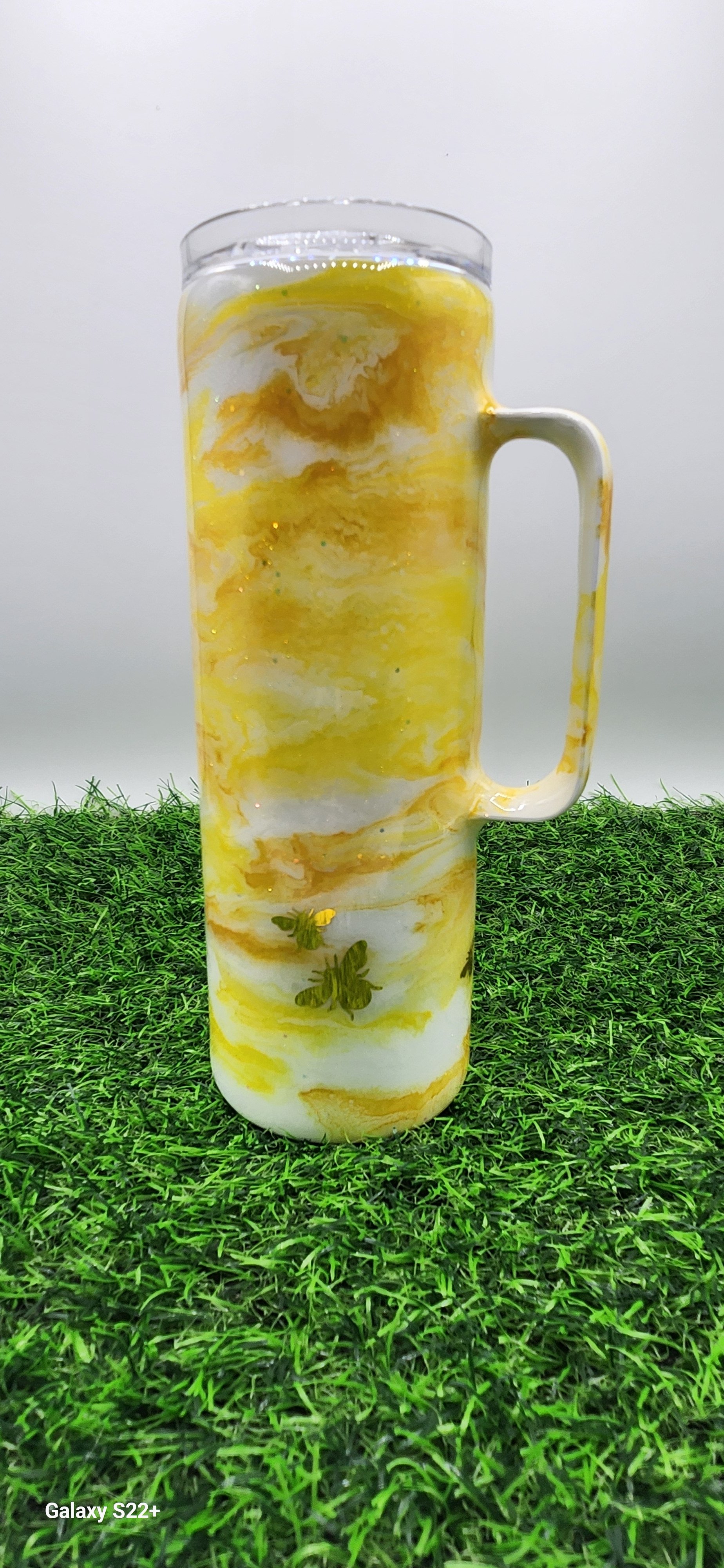 Mica Ink swirl 20oz insulated hot/cold tumbler with handle.