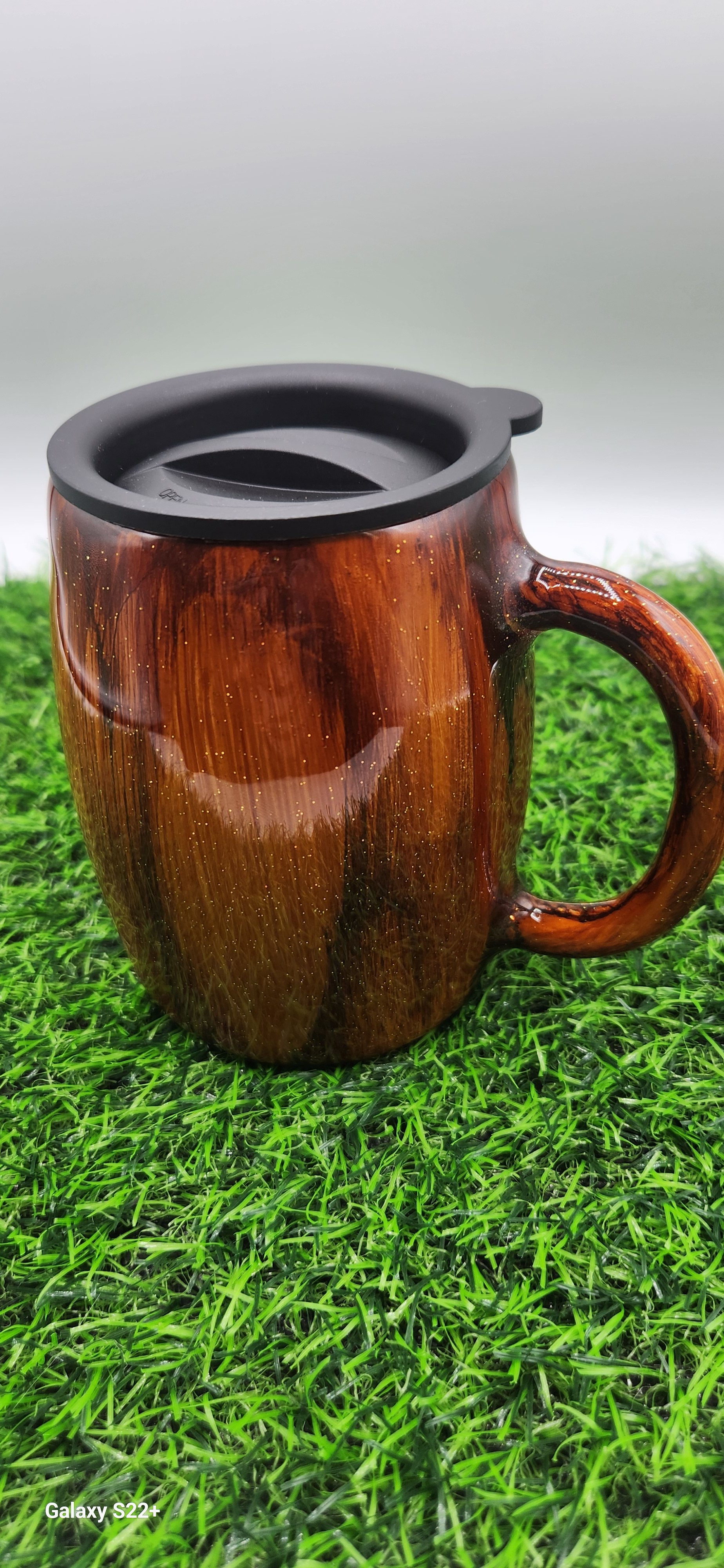 Alcohol Ink - Woodgrain 14oz insulated coffee mug.
