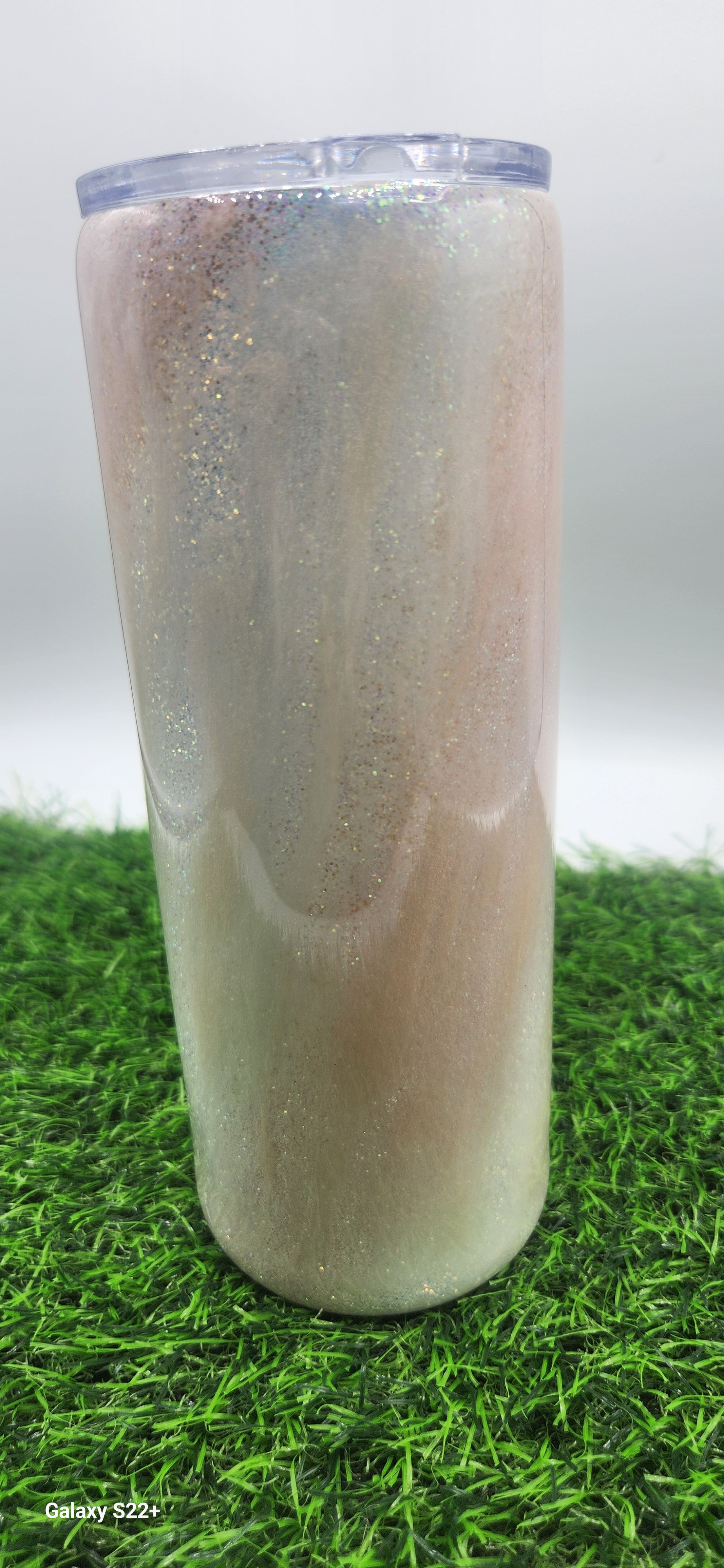 Glitter & Light Pink Mica Swirl 24 oz. hot/cold insulated tumbler.